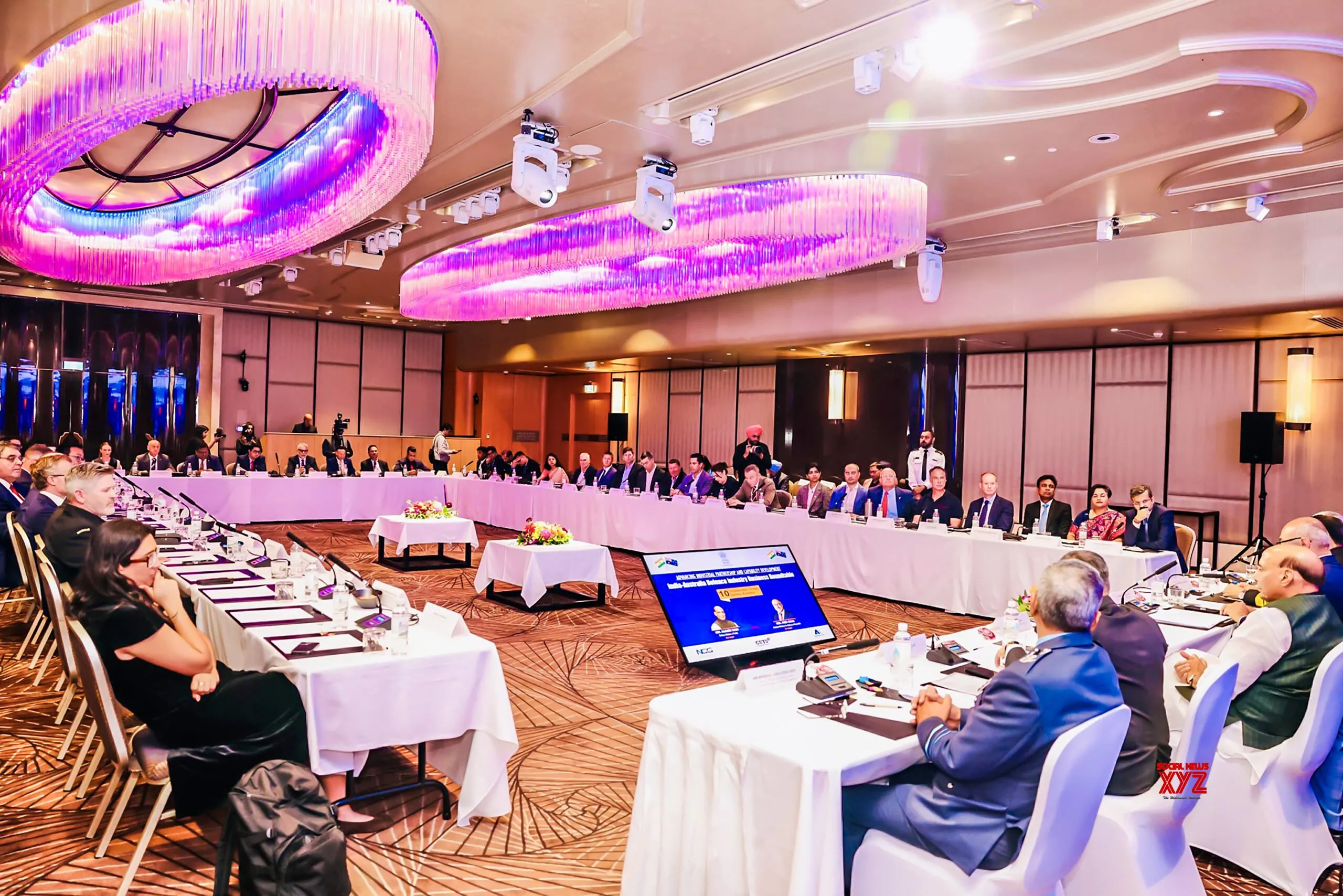 Sydney: Defence Minister Rajnath Singh co-chairs the first India-Australia Defence Industry Business Roundtable with Australian Assistant Minister Peter Khalil in Sydney, on Friday, October 10, 2025. (Photo: IANS/X/@rajnathsingh)